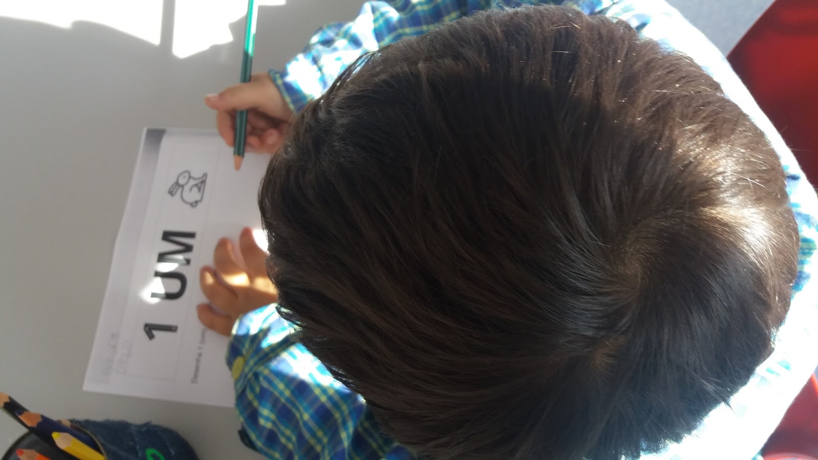 Continuamos com a realização da atividade do dia anterior, o grafismo do número 1(um).😊